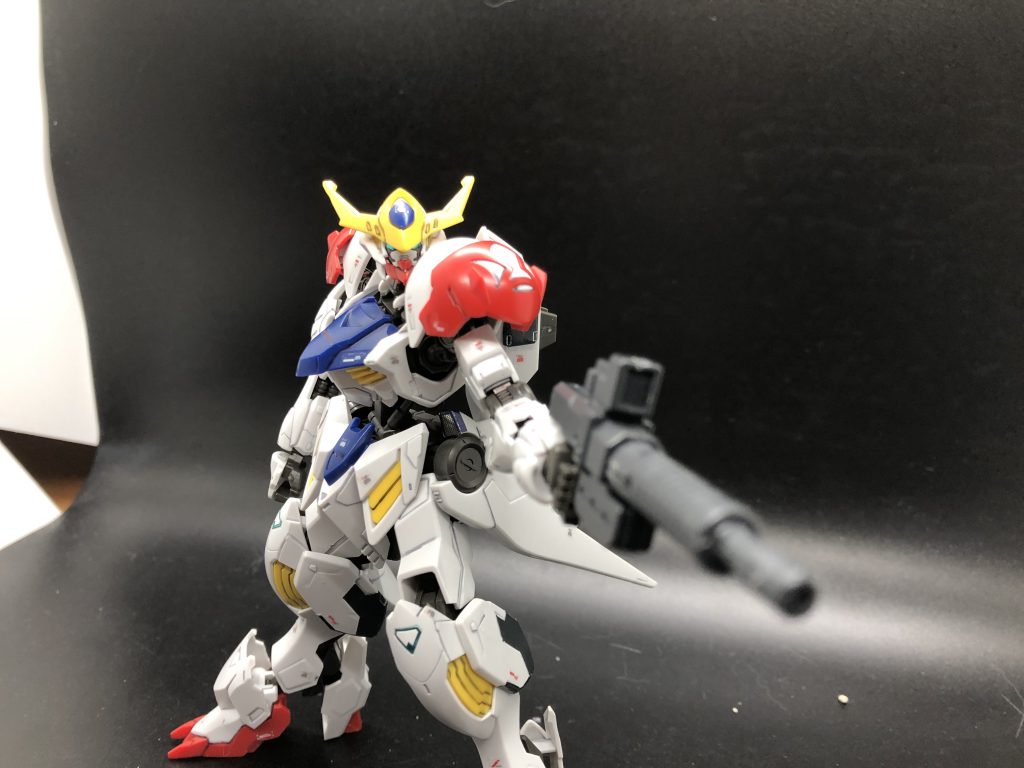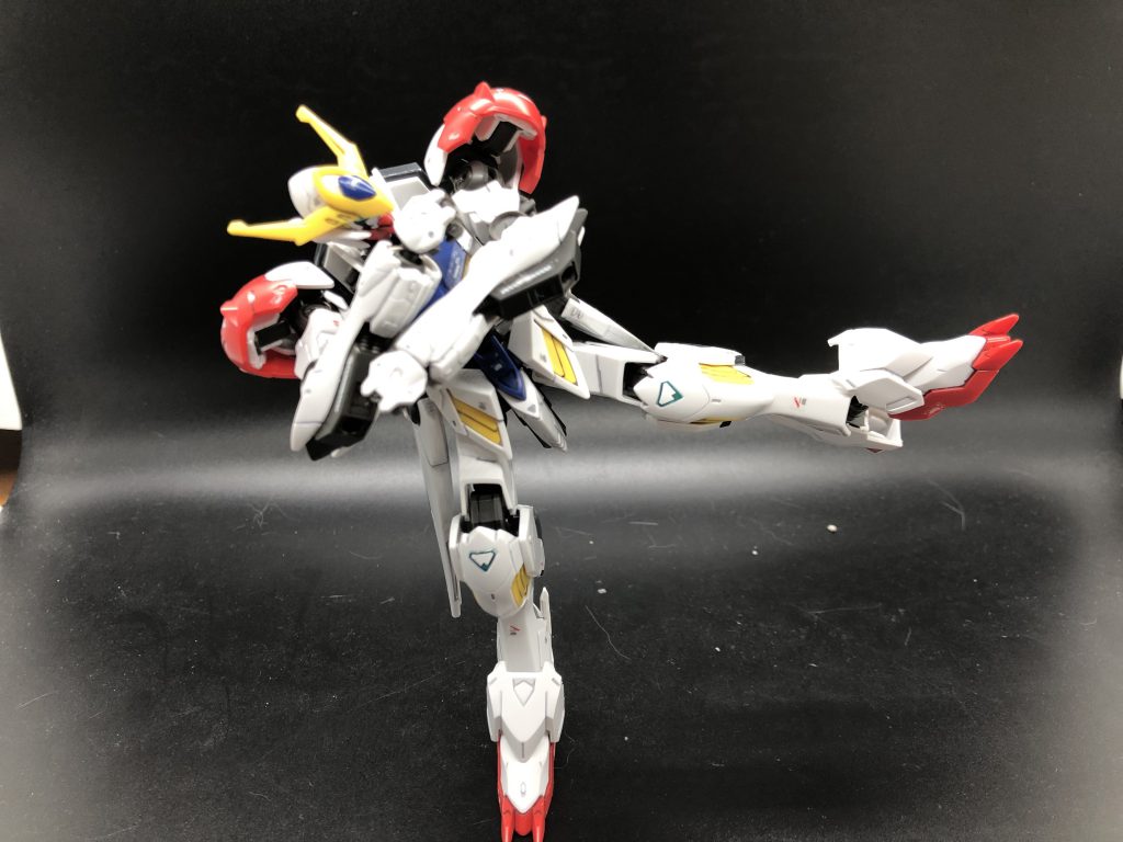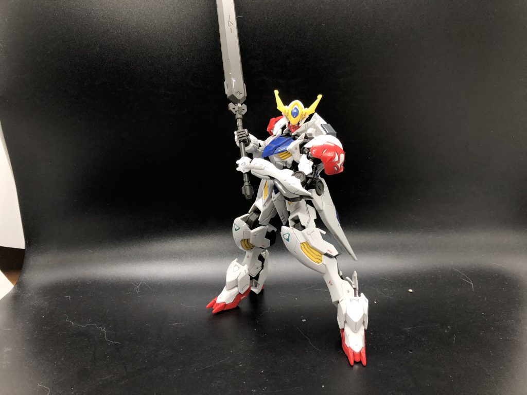 Yeah it looks like it can pose well, but it took a lot of wobbling to get it to hold this pose. Bandai's HG IBO Barbatos LupusThese are legitimate problems, but I do still love this little thing. When the parts aren’t falling off, the articulation is impressive, and if you can get past the stickers it does look great. I complained about the frame, but it does still have a frame, and seeing the mechanics poke through the armor and show at the joints adds a ton of visual interest. Having a set of hands with hyper-extended wrists opens up the option of swinging the sword like a baseball bat (which is basically how the thing is designed in the first place), and it can slot into both hands, which you’ll need because otherwise you have a holding hand with nothing to hold, since you just get the one weapon and no clenched fists or open hands. This is a fun kit to pose, and can pull off more moves than you might expect at this price point, but it’s dragged down by just not being sturdy enough to play with.
