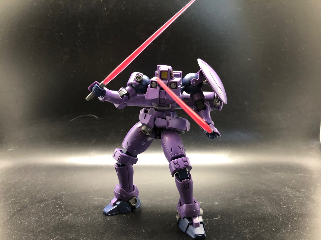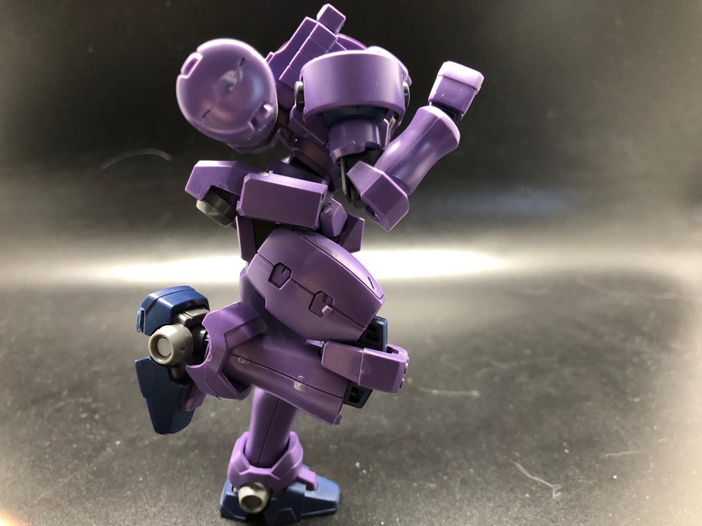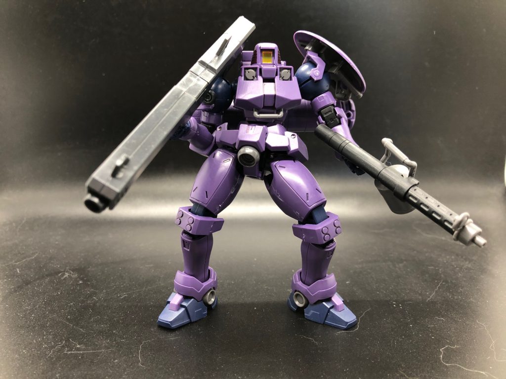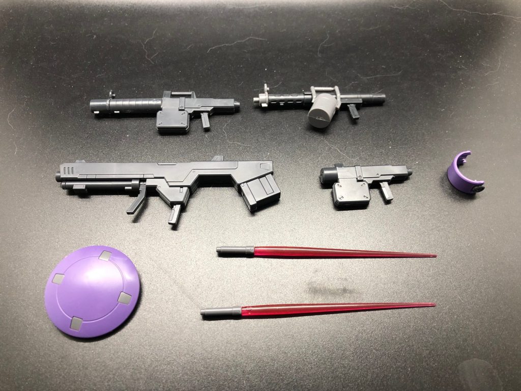 The accessories are where this thing shines. In addition to getting the machine gun, shield, and beam sabers from the base kit, you get a bazooka, two beam rifles, and a pistol. It also has a new backpack, and a couple of new shoulder armor pieces, with some fairly weedy looking thrusters on them. It is a downer not to get any extra hands, just the two gun-holding ones, but the hands provided do the job adequately. You can, of course, choose to build this as a purple ground-type, if you want.