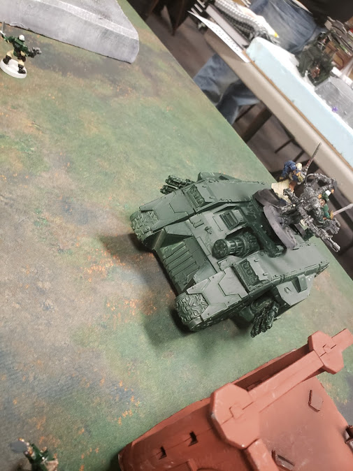 If you squint, the gaps are.... still there...So. As you can see, I need a little bit more work on this labor of love. Also, I found out that the things causing the gaps don't even need to be on the model. Normal Land Raiders have assault launchers that do mortals when they charge in. The Achilles does not have that, so I may just have to break off this heavy armor to help the aesthetics of the model. That's what I'll be working on for the rest of this week. But for now... IT'S GAME TIME!!