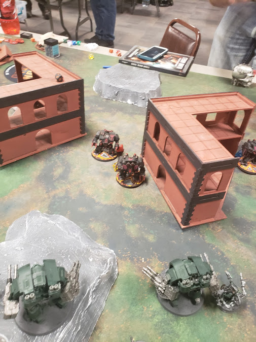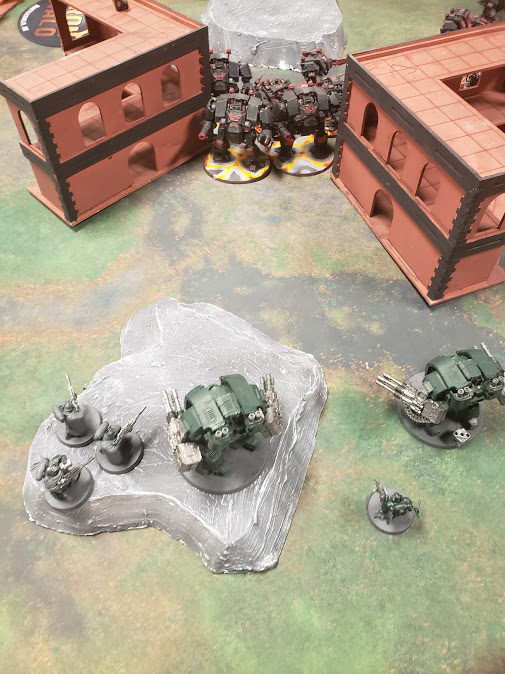 I was pretty excited when I saw this match up! I mean look at what his army has to do, it has to come right at me. I have meltas, I have storm cannons, I have a Gravis Captain who wants to punch anything and everyone! I was feeling pretty good right away. Last time we played he brought 180 Plaguebearers and I thought this was a good match-up for me. When we rolled off to see who would go first, it was his robot army that got to take the initiative. Billy's strategy was... aggressive, to say the least. He decided that to face all of my guns with his supreme close combat options, he would run every single one of his dreads and then popped his smoke on all of them, investing in his turn two.