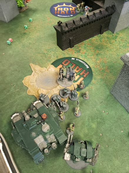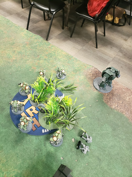 But the game came down to him wrapping my scouts on the north objective with his Aggressors, instead of swinging with power fists they just slapped them in the face, killing none of them. This then led to him killing them in my turn, then going to touch my N Leviathan who got caught out. On the South end, his scouts touching my entire firebase and not getting run over allowed his Chaplin dreadnoughts to punch me into little pieces.
