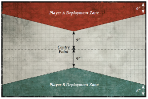 I rolled lower for deployment, so I had the first turn. I placed my objective around an L blocker in the southeast and my other one on his deployment edge in the middle point. He placed him behind an L blocker in the NE and his other directly across in my SW corner. I deployed my rocket squad in the middle, hidden a little from his firebase, but enough that I don't cost myself any real line of sight for when he places his planes. I put a flamer Speeder squad on the left and right flank, Scouts in the middle to threaten the bonus point and my Infiltrators back on the rear L blocker on my bonus objective.