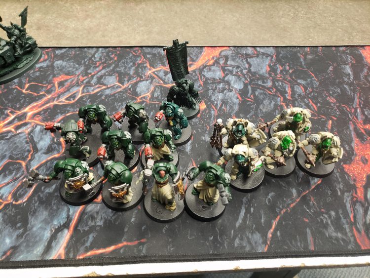I see the Chaplain taking the squad of Black Knights with hammers up to some cover to threaten any scouts/nurglings chaff in a table quarter or going for a turn one charge if the opponent made a critical deployment mistake. The second squad, captain, and apothecary hang out with the onboard termis and eradicators, providing a longer charge threat and Combined Assault platforms.