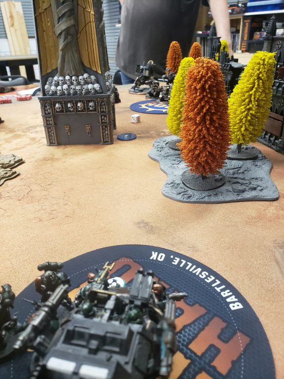 Cyle is like, the king of Admech in my eyes after his awe-inspiring run last year. My Dark Angels were very practiced at fighting these crazed Techno Zealots, though the list he brought was quite a bit different than what I've played against in the past. The transports were only drills, not the crazy cyborg-hillbilly-yacht club of Cyle's. Finally, the other big difference that I ran into was the Kastelan Robots that I believe, with the big change of vehicles being able to shoot into combat, have gotten quite the large buff, especially when they are taken in a Mars detachment, some mighty mortal wound output there. If only my Terminators didn't have Inner Circle and had some kind of trait to protect from that.