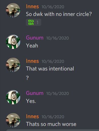 Sidenote of personal Gunum Victory here: In a roundabout way, Cyle totally agrees with me that Inner Circle is a sideshow trait. Gunum is already one point up!