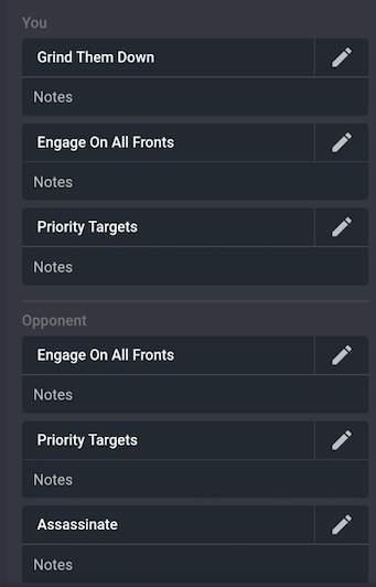 We went through picking our secondaries, and as planned, I picked my aforementioned secondaries, and I really wasn't that surprised by what my opponent had chosen.