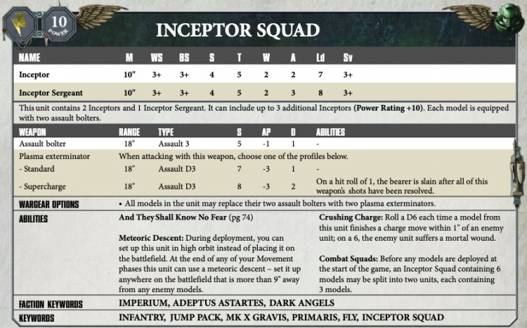 As you'll see from my version of the list in a second, I like having one unit of Inceptors but I think that two is excessive when we're trying to make this build work. We have to at least entertain the creative fiction that we'll be leaning on the Dark Talons for more than one turn of impact, and I also really don't love opening the door to Gangbusters wide open when we're not compelled to - as I covered in my ITC Secondaries article it tends to be a near freebie when it's available, and I think we can use the points from the second squad more effectively.
