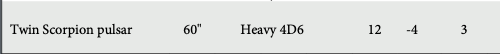He also has planes, which, you know, of course he does. The Hemlock will cheerfully take out a Dark Talon turn 1, which added to the one the Scorpion presumably exterminates leaves one left for the Crimson Hunters, who don't need to high roll that much to finish the job.