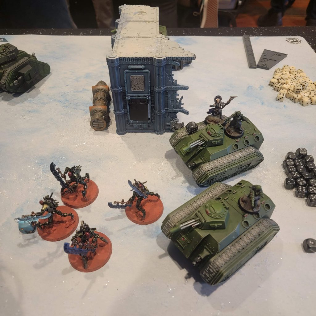 Fleeing to their Chimeras for safety. My Skorpekh fail me for the first time in the event.