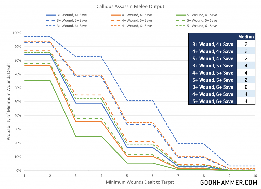 Don't be surprised if you see an influx of Assassins appear on the battlefield; with these abilities and lethal output they definitely seem like a viable option in 10th Edition. Whether it's the specialized attack of a Culexus against a psyker-heavy force or a Callidus sneakily capturing objectives and making life hell, there's an option for everyone. Hopefully these numbers will give you guidance and context for how to best use these models in your army.Have any questions or feedback? Drop us a note in the comments below or email us at contact@goonhammer.com. Want articles like this linked in your inbox every Monday morning? Sign up for our newsletter. And don’t forget that you can support us on Patreon for backer rewards like early video content, Administratum access, an ad-free experience on our website and more.
