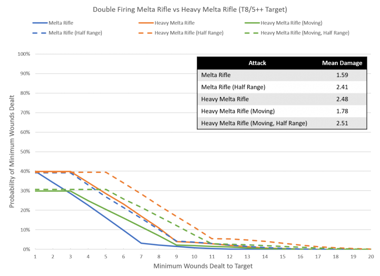 - Even with a movement penalty the mean damage output from heavy melta rifles makes them a superior choice to melta rifles, and that's not even considering the presence of multi-meltas.