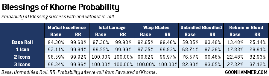 - The baseline probability given a single Blessings of Khorne roll of 8D6.