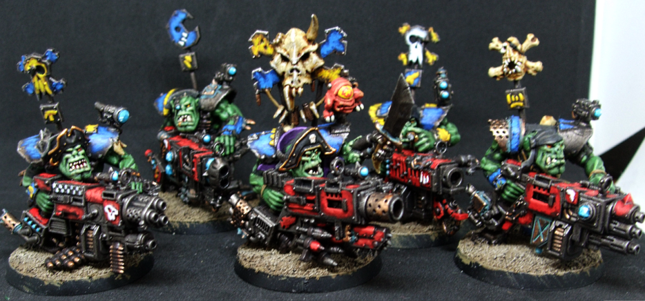 This is the big one - you'll see three units of these in every More Dakka! list, and you may see one accompanied by a Big Mek with Shokk Attack gun, though they're more likely to pair with Tankbustas. In a competitive list, this unit will run ten models: Two Spanners armed with kustom mega blastas and eight Lootas armed with deffguns. The unit special rule here is Dat's Our Loot!, which lets them re-roll hit rolls of 1 with ranged attacks, or all hit rolls against enemy units on objective markers.- Deffguns have 48" range with 2 shots each, hitting on 6+, with S8, AP-1, and 2 damage, plus they have Heavy and Rapid Fire 1. You probably aren't keeping them still, however.