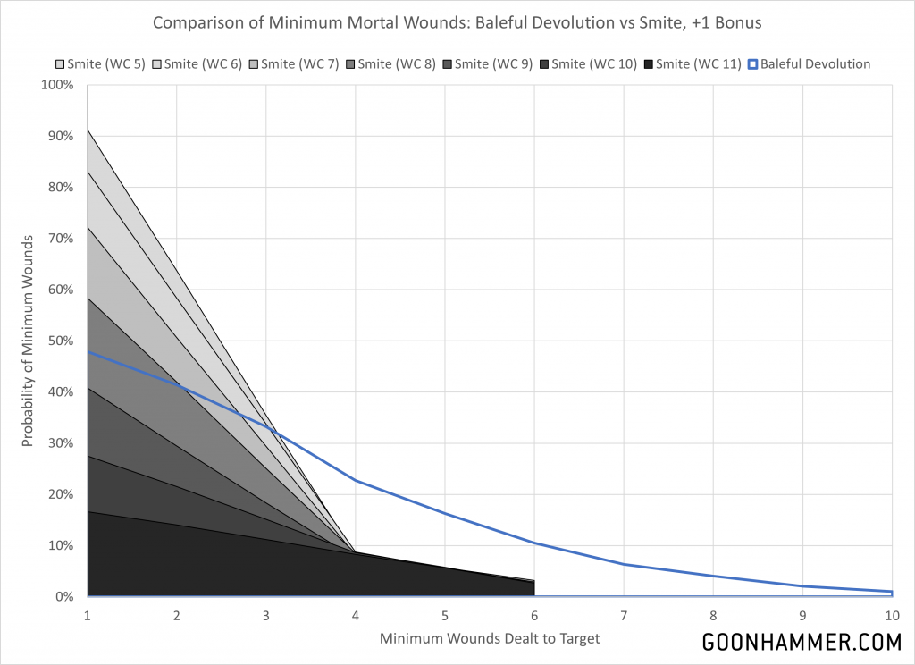 This is actually my 100th Hammer of Math article and I just wanted to extend my sincere gratitude to all of you readers. In the past two years I've done my best to take an in-depth and careful look at the numbers behind our favorite games, and it's been a real adventure learning everything with you. From calculating the probability of a Warlord Titan killing a Leviathan Titan, to the ballad of Space Wolf Lord Smashwolf Wolfsmash the Second, to the 80,000 of you who viewed my most popular article on Primary and Secondary Objectives, this column has gone in a lot of different places within the realm of miniatures games. Some of the best ideas (such as the one above on optimal mutations) come from you, so if you have any ideas as to what would make a good article please submit them here. I read every suggestion.If you have any feedback, feel free to drop a note in the comments below or email us at contact@goonhammer.com. You can also reach me directly via @PrimarisKevin on Twitter.