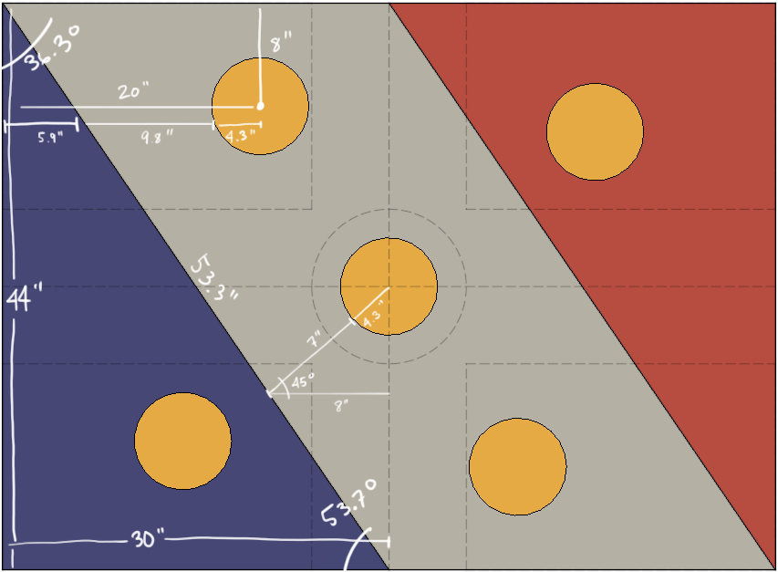 Note: These distances are approximate - they'll be accurate to the nearest tenth of an inch, but there are going to be rounding errors here and there any time you work with trigonometry.