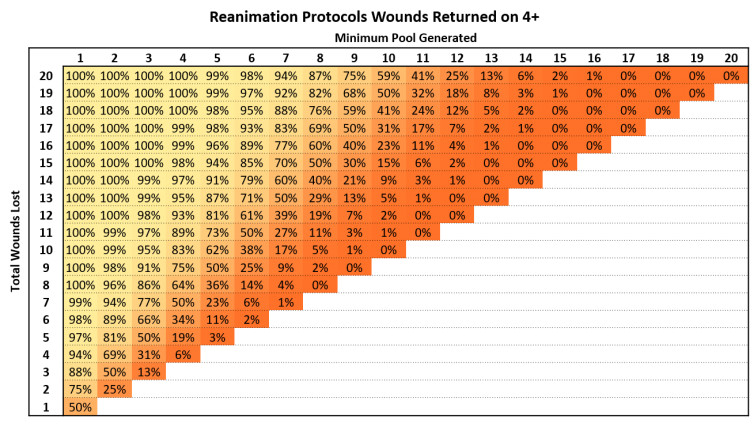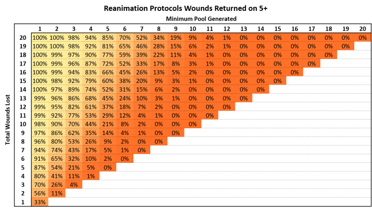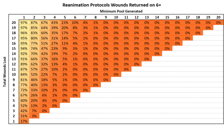 - The limitation on modifiers means that a Reanimation Protocol roll will only ever be a 4+, 5+, or 6+.