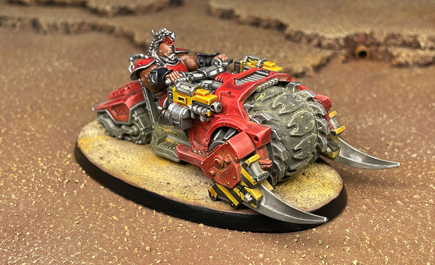 When I first ran the numbers, I found this to be a particularly challenging thing to wrap my head around. Shouldn't the opportunity to choose your location mean you have a better chance of taking out the Crew and therefore getting a Loss of Control test that forces a wreck? The answer is yes, but it doesn't really matter.Take the example of an Ash Wastes Nomad trying to skewer a Ridgehauler with a chain lance. The attack hits on a 3+, wounds on a 5+, and the target will save on a 5+. That translates to roughly 15% of the attacks getting past the gate checks. For the sake of simplicity let's assume the goal is to force a Loss of Control test via a Catastrophic Hit, and that the target has already had their crew knocked out so all LoC tests will fail. The chance of getting at least Catastrophic Hit result on two dice is 31%, so the multiply that by the probability of even getting to the point of rolling damage and the probability of getting a Catastrophic Hit is 4.5%. If we then assume that the target will always fail the LoC, then the chance of a roll is 1 in 6. So the net probability an attack forcing a roll is 0.75%, which would require around 93 attempts to have a 50% chance of getting at least one success. And that's assuming every attack fails the LoC check.