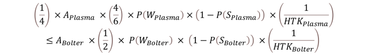 Note that the hits to kill is an essential deviation from the traditional damage formula; it reflects the fact that extra wounds are effectively lost. A D2 weapon hitting a 1 wound target is no different than a D1 weapon. Our break even point is when the expected kills of the combi-bolter is greater than 25% of the expected wounds of the original plasma gun or melta.