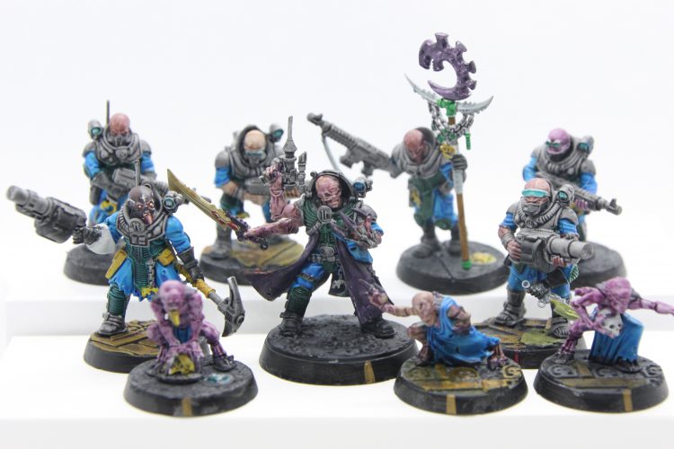 1x 7 Acolyte Hybrids, 1 Acolyte Hybrid Leader w/Cult Icon & Hand Flamer, 1 Acolyte Hybrid w/Heavy Rock Saw & Hand Flamer