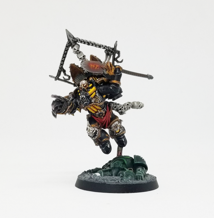 Haarken is here as support for the Raptors. I'm probably getting too cute with him since he has no way of reliably making his charge, but with a 6" re-roll alll hits aura he can be money for the Raptors and his -1 to Ld for enemy units within 18" gives him a huge boost to stack with Raptors and the Night Lords trait, helping me get as high as -5 with the right units nearby, which also helps get off Prey on the Weak against high-Ld targets.