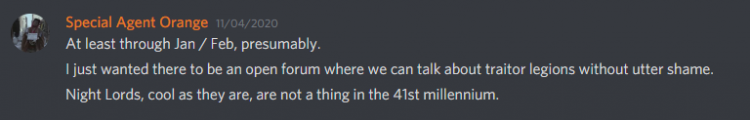 OK first off, Special Agent Orange (SAO), how dare you. Second, not necessarily true - the Night Lords have good rules and have been relevant recently. I was quick to point this out: