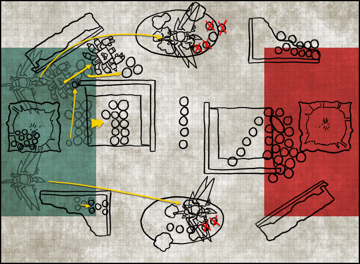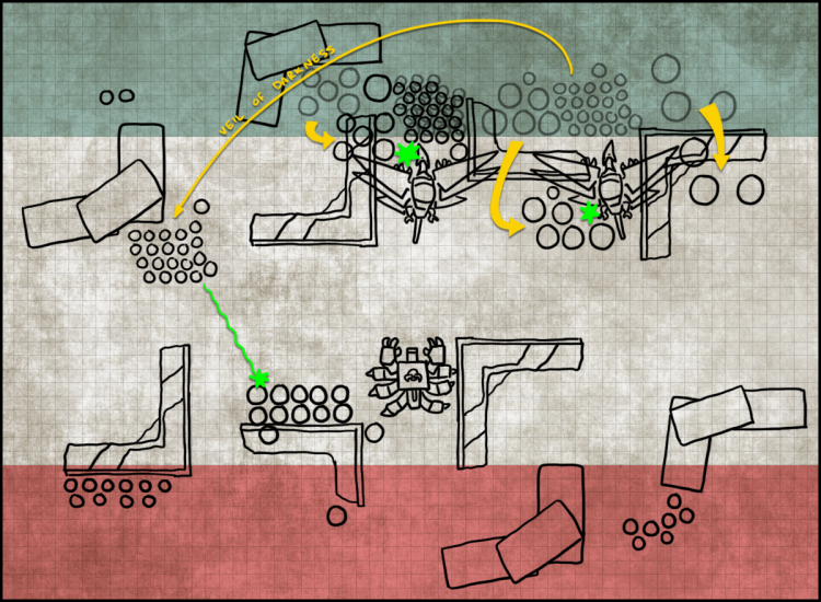 The mission was 23. The Scouring. Probably one of my least favorites. The Deployment Zones on this one are weird as hell (Corrode: for anyone who's finding this one troubling, it's worth noting that the map in ITC battles is, or was, scaled wrong. Rob's version below is correct) .