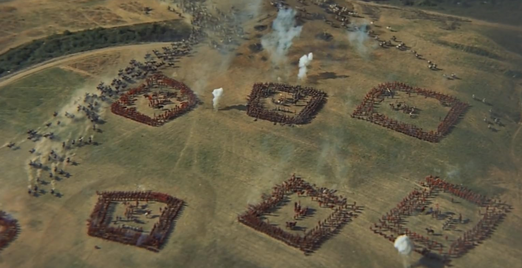 Jackie Daytona: I’m just going to bite the bullet and recommend Waterloo, and while it does have its flaws all the effects are in-camera. It blew my CGI-spoilt mind that yes, they actually landscaped a valley to accurately represent the Waterloo battlefield, and yes, they actually trained 20,000 Ukraine soldiers to march, load and fire, and use contemporary tactics in an epic ballet. Rod Steiger plays a brooding Napoleon, who delivers some solid speeches. I don’t think it gets mentioned that much in the series of best war movies, probably because it bombed I guess. They don’t and won’t make these anymore, and it’s worth it alone for the spectacle of several thousand troops marching alone.