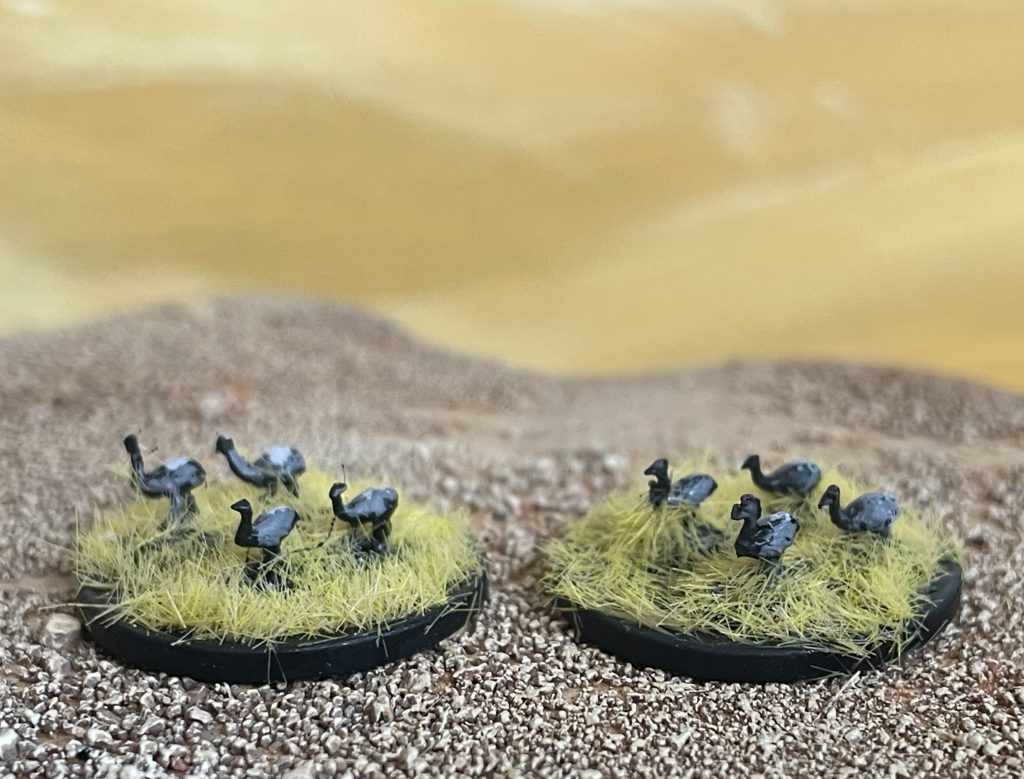 Emus. Credit: 2d6 WargamesThe pack brings with it a selection of 6mm figures - two Lewis guns and 60 Emus. They’re nice, as far as you can describe 6mm Emus as nice. They look like the big bird they are, and they require little cleaning and preparation. The Lewis guns are good, with an appropriate amount of detail for 6mm soldiers and are clearly not generic HMGs. They would work well in a 6mm WW1 or WW2 army if you’re looking for another use for the six small men you get here. You could do with more Emus - 2d6 make an expansion pack - for a longer game, though with any more Emus the experience will go from quite funny to interminable.