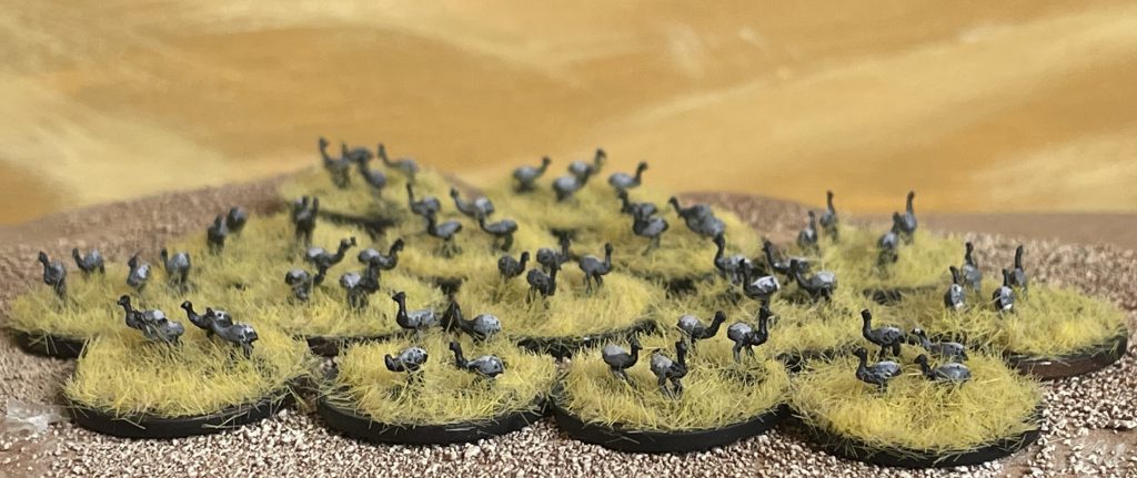 You get everything you need in the pack - Emus, guns, and rules. You set these up on a full, featureless 6x4 and play the game. Done. That’s all there is to it.