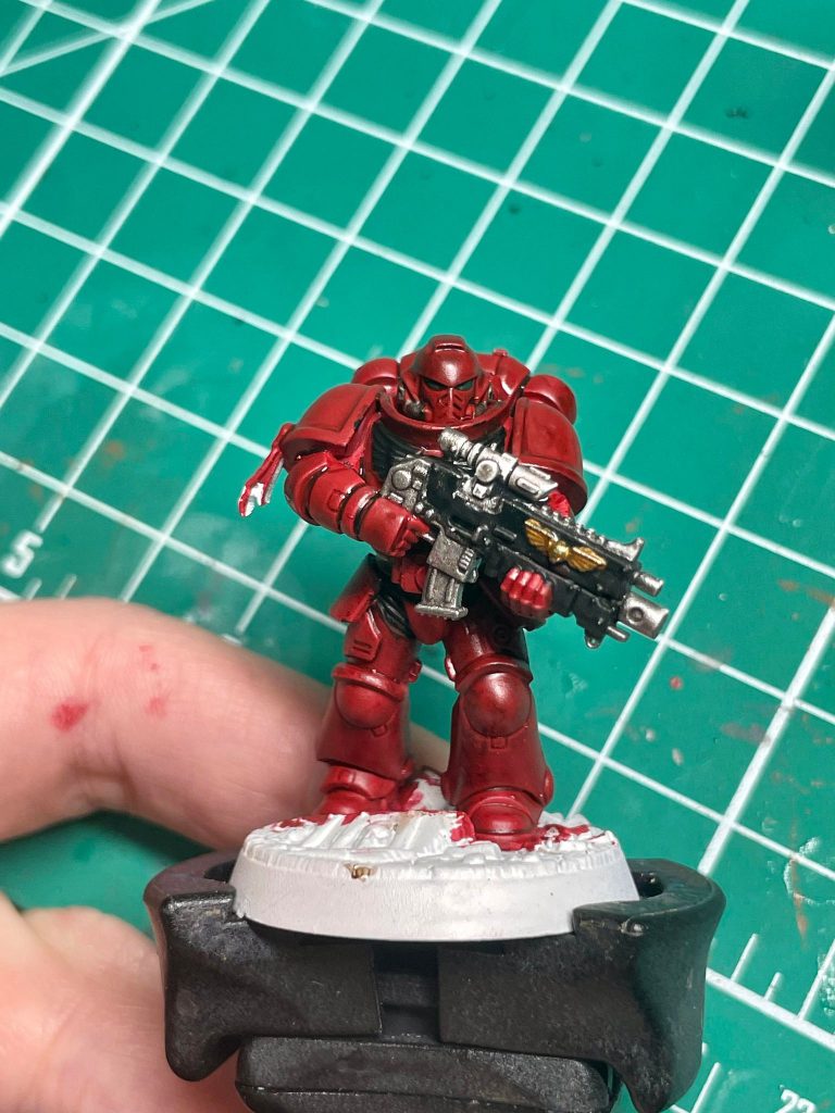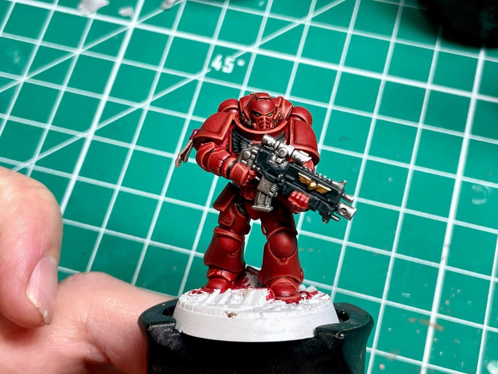 So, we pick out the edges of the model, clean up any mistakes, practice some patience, and take a look at that Blood Angel!