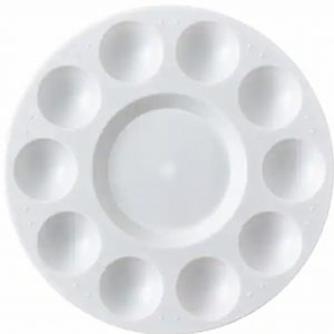 There are several Do-It-Yourself options with materials you may already have or that are available inexpensively. An old plate or piece of ceramic tile both make a good palette that can be easily cleaned by scraping dried paint off. I would suggest using white or light grey material to help distinguish color and consistency easier.