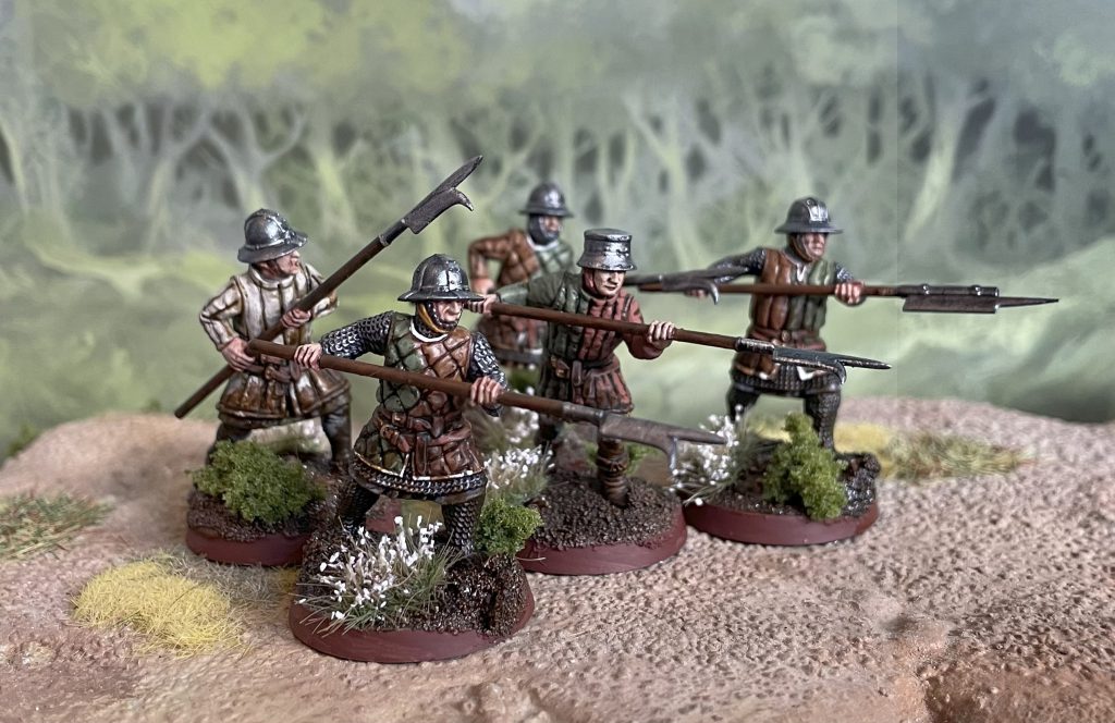 Adding water effects to a base can vary from the simplest bit of gloss varnish through beautifully gross mud all the way to complicated resin pours. I hate working with two-part epoxy resin for water effects - it's sticky, it runs everywhere and it can do all sorts of things to paint and basing with the heat of the reaction. Instead, I use gloss varnish - and lots of it. I'm on my third or fourth bottle of Warpaints Air Gloss Varnish, which comes in a nice fat bottle at a good consistency for a good price. There's a couple of ways I use it for basing.The first is very simple. Drop varnish over textures you'd like to look muddy. The more the merrier here, I drop it on until a base is swimming and then wait for it to dry. It'll add a fantastic glossy finish to basing materials that makes them look waterlogged. Over sand painted with any number of browns it will transform a dry basing material into mud. I've added a light coat to the bases of these Medieval Sergeants to create a nice, very budget, muddy look: