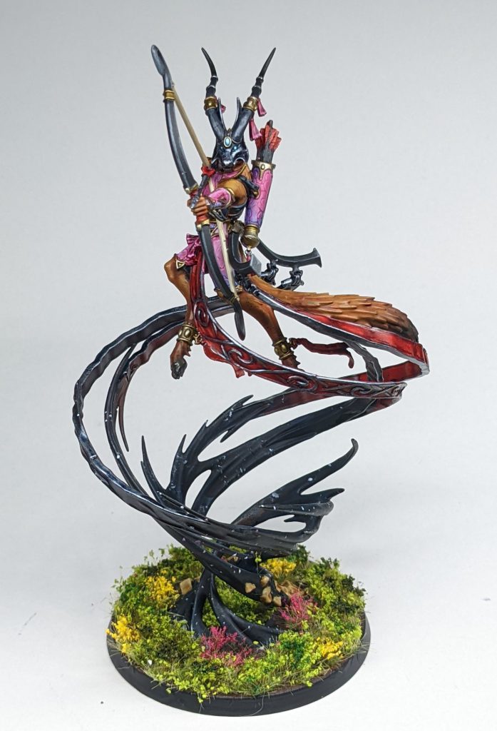 Hurakan Spirit of the Wind. Credit: Rich NutterRich's Hurakan (when did the elves get weird deer people?) is another really nice base, this time using a wild variety of tufts and grass to produce a vibrant, exciting frame for a very colourful model. This is great colour placement too, with the top and bottom of the piece having a riot of different colours, while the big swirly black bit provides a ton of contrast.