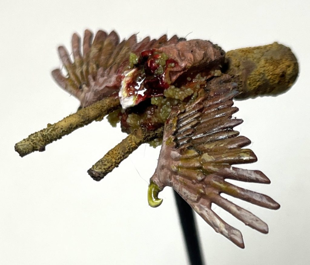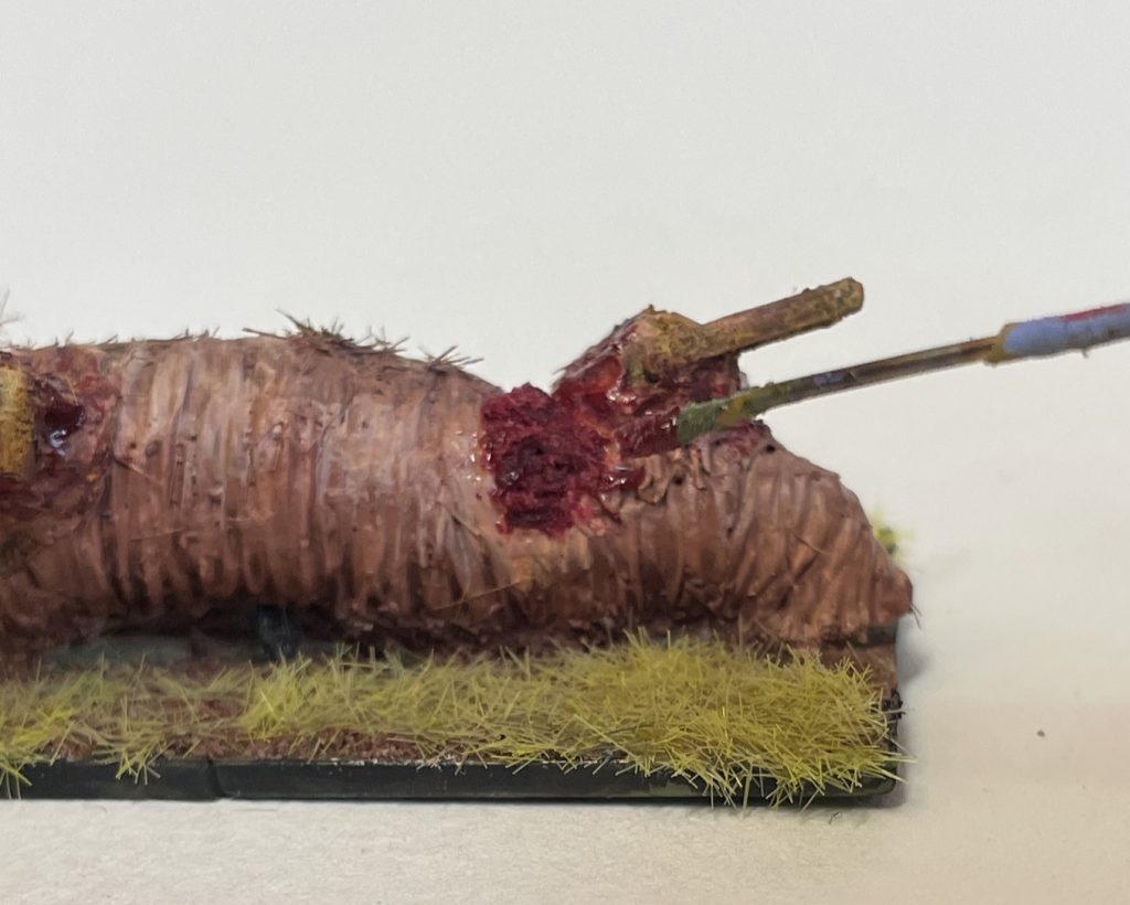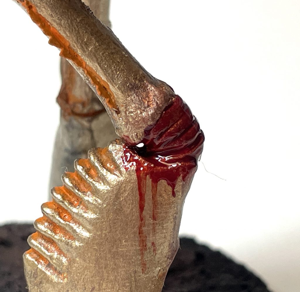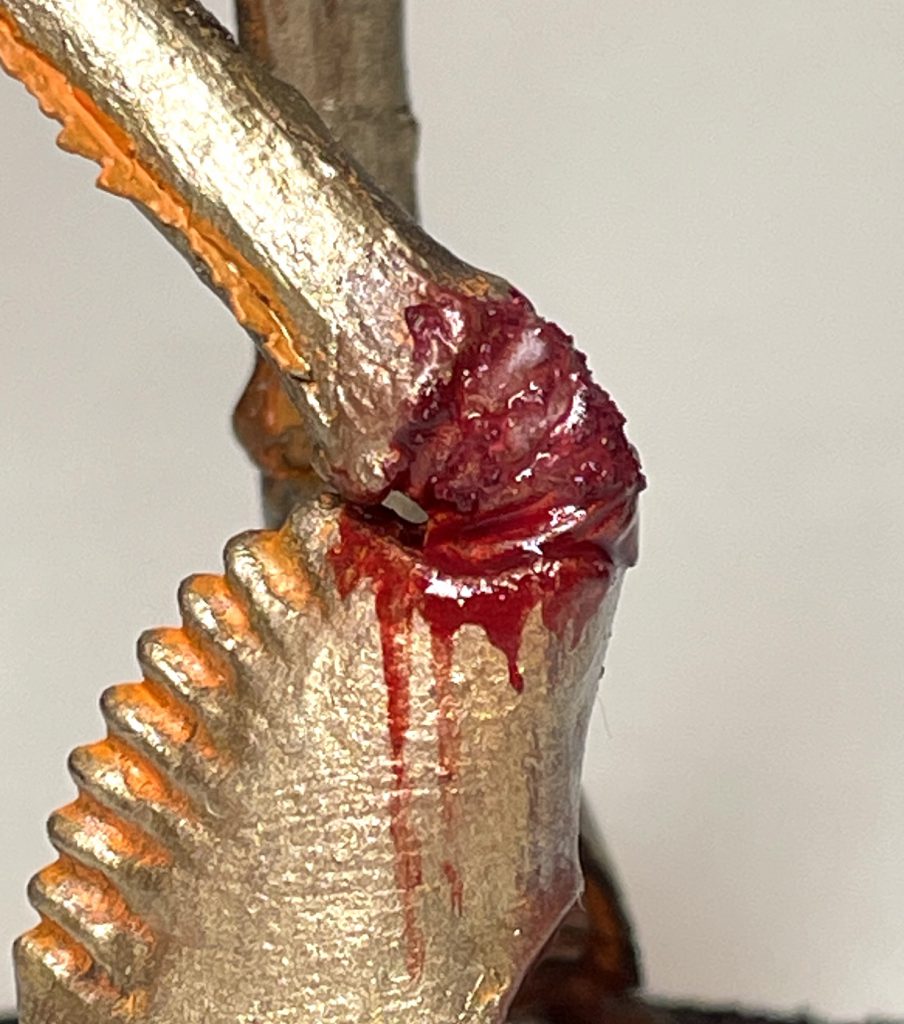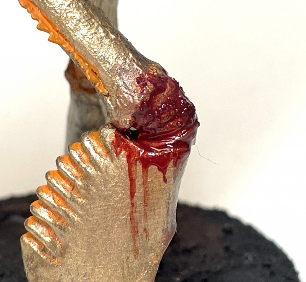 Quickly, stab it with a pin! Blood and Gore effectsYou can keep doing this as long as you'd like, and with patience and clever superglue placement, can create large encrusted open wounds which is very satisfying!