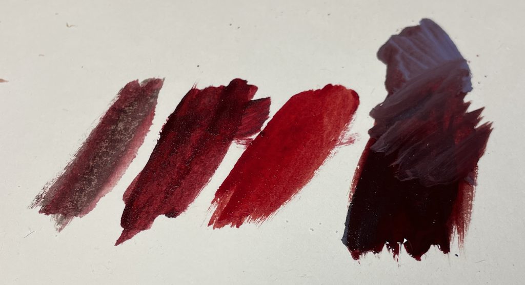 We can think of the "neat" effects paints as fresh blood, slime, bile, and vomit. That's the liquid stuff coming straight out of a cut or mouth as appropriate. Mixing the paints lets you paint one dripping into another, or something like a stomach wound or bloody acidic maw where the two will interact. The thickeners all look very different, and give you a wide toolbox to play with. I hope you can immediately see where different looks will come in handy.