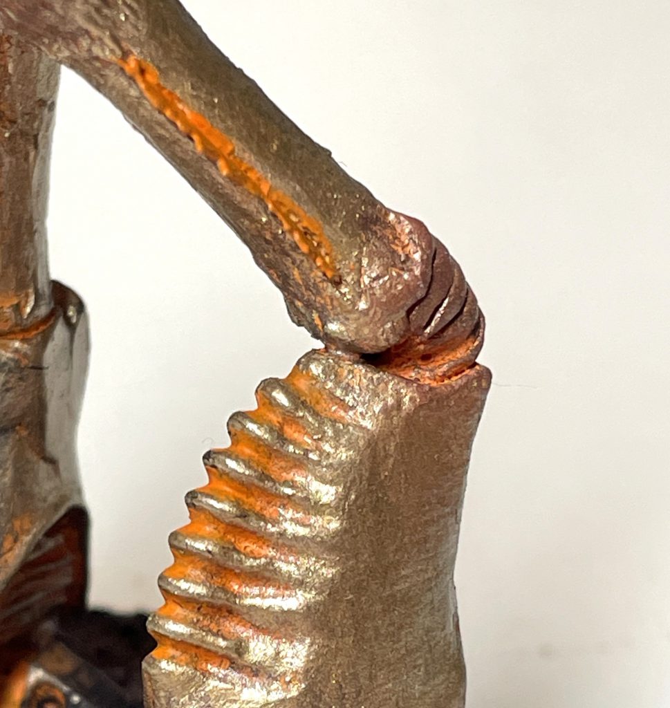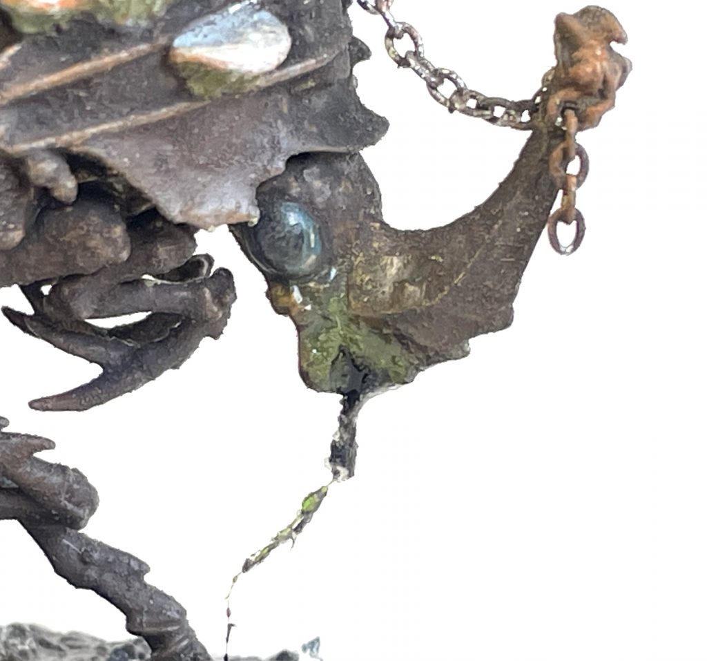 Dried Vomit and Scabs are tricky to do conventionally, so I don't bother. Instead, the trusty superglue+paint combo does a lot of the work for me. Add superglue to the area you'd like to scab up, then overlay this with paint. Don't use a brush, as this is a sure fire way to ruin any brush you use.