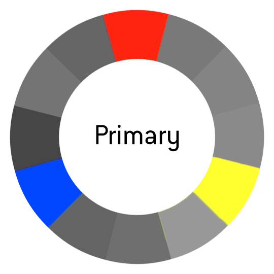 - Primary - Primary colours are the most basic colours available: Red, Blue, and Yellow. What makes primary colours... well, primary, is because they are the only colours that cannot be made by mixing other colours. No matter how much red and yellow you mix together, you will never be able to create blue.