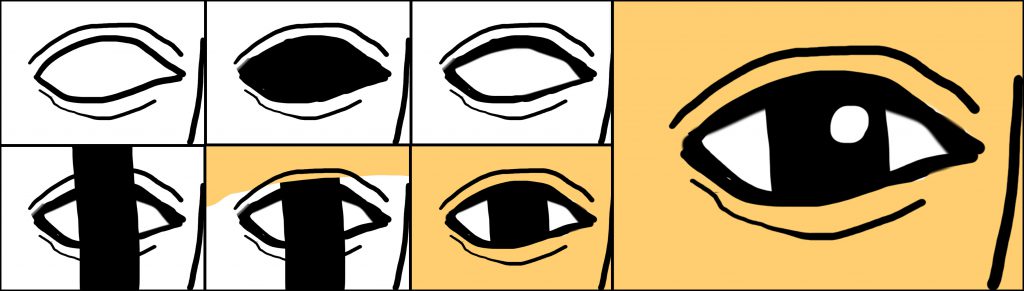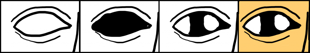 - Paint the white of the eye inside the previous colour, leaving a sliver around the edge between the sclera and the eyelids.