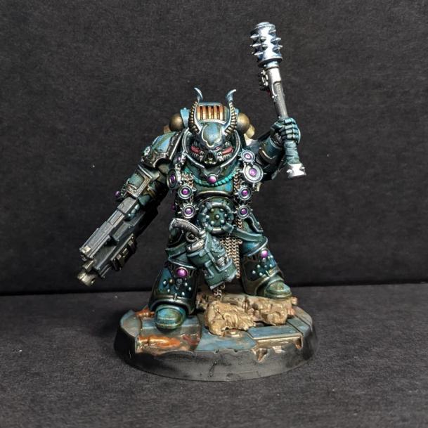 The beginning of a grim, dark, futureThe posing really came together with Valerian's head, angling down with a dismissive sneer that captures the strong image that I had: a psyker brutally crushing a roiling mass of warp-tainted flesh into the ground with the force of his hatred.