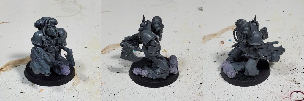I decided I wanted to use this chonky boy as an Armistos for a future heavy bolter support squad. I used parts from the praetor, the Chaos Space Marines kit (a trove of parts for kitbashing characters in traitor legions) and the heavy bolter from the mk IV tactical kit that I had lying around.