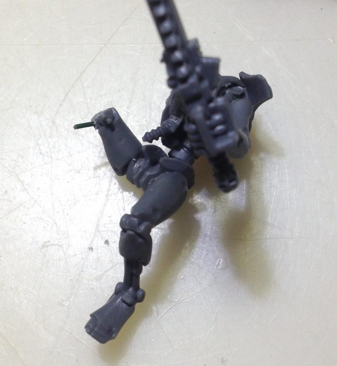 Part of what inspired this build was wondering how a more spindly model like this could be reposed and still be reasonably stable. Drilling and pinning with small wire works well for this as long holes are drilled carefully and straight as possible to avoid coming out of the sides of arms and legs. I have since had good results even on skeletons. When this guy gets painted you'll be sure to see him here.
