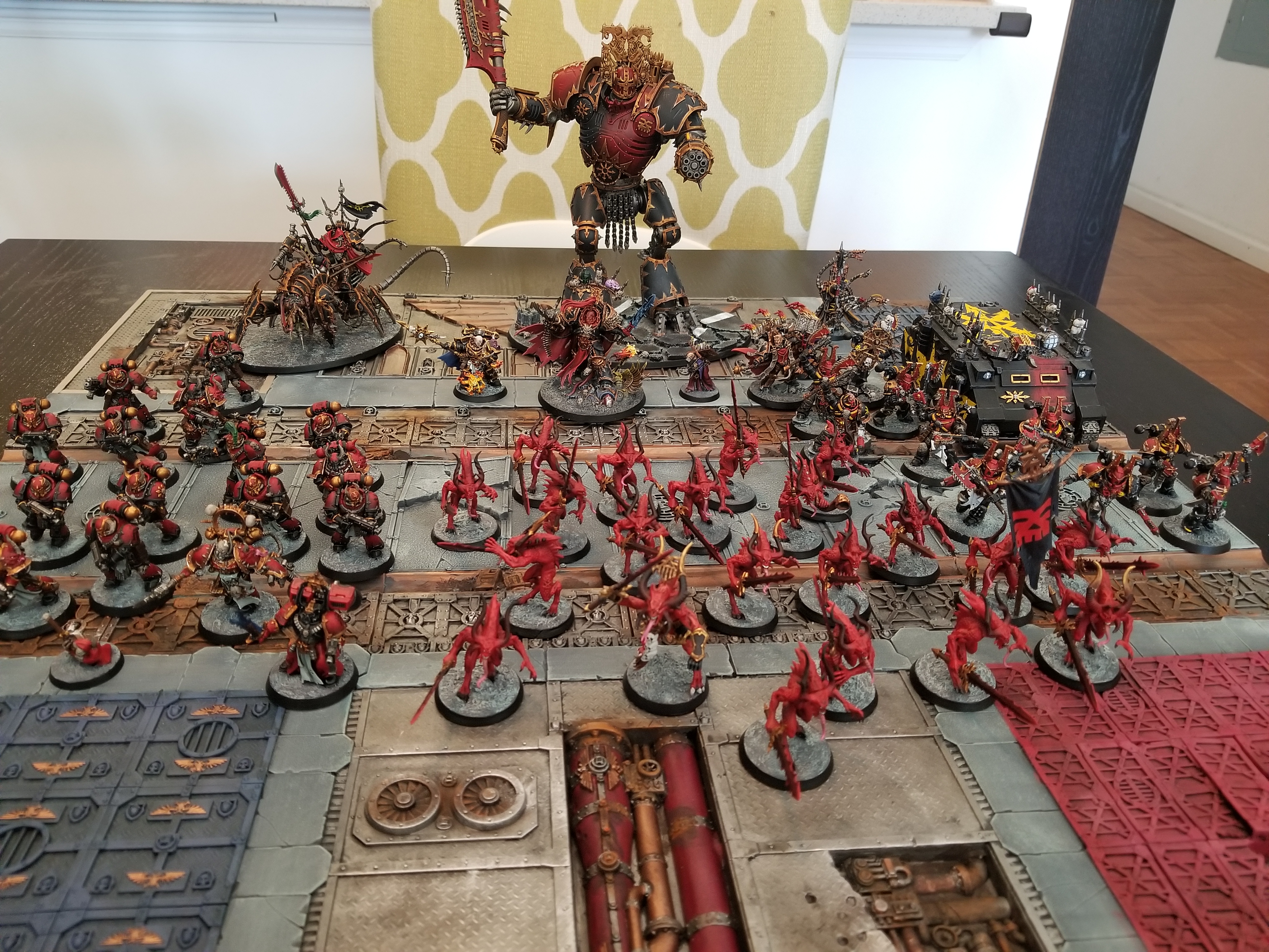 A good display board could somehow tie in an army that had both Death Guard and Magnus, to use my previous example. How? Honestly, I’m not sure, but as someone who’s been playing with both Death Guard and Thousand Sons (fight me, I don’t care about your fluff) recently and contemplating taking them to an event where I’d need a display board, I’ve been giving it some thought. The cool thing about Chaos, for me, is that pretty much anything is possible, and it’s my story to tell. Is Tzeentch tricking Magnus and/or Mortarion to work together even though they hate each other? Has the Alpha Legion infiltrated the Thousand Sons, but Ahriman doesn’t know, and that’s why my list has both Alpha Legion and Thousand Sons? This and everything else is possible, which is both the freeing and difficult part. If I want to bring a soup-style list to an event but can come up with a display board that tells the story of how they showed up to the battle on the same side, the difficulty of achieving that should be rewarded through paint scores.