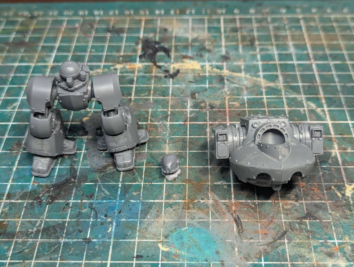 The legs can easily be put into a standing position, braced to fire or midstride, using a different foot being lifted off the ground. You can trim the nubs off the legs to allow for slightly greater flexibility, but you aren't going to get much more than the Captain Morgan pose with one foot elevated on a rock - which is what I did on my original plastic Deredeo.