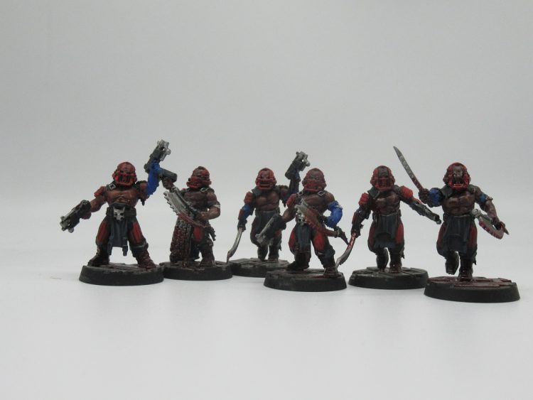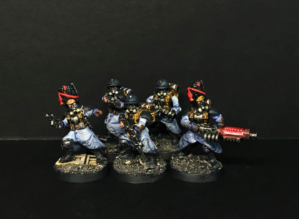 Remember the Salvar Chem-Dogs? Turns out their ancestors are here - stimm-using, drug addicted infantry with a fair immunity to falling back and the potential for frenzon injectors giving them furious charge. There's a lot of options you could go for here - Goliaths again would be pretty great - but a simple recommendation would be rebreather or other closed mask heads on whatever infantry bodies you want to use. Anvil Industries have a massive range of head components, from the bulky Hazmats to extremely creepy Millennium Gas Masks which will easily sell the chem look.
