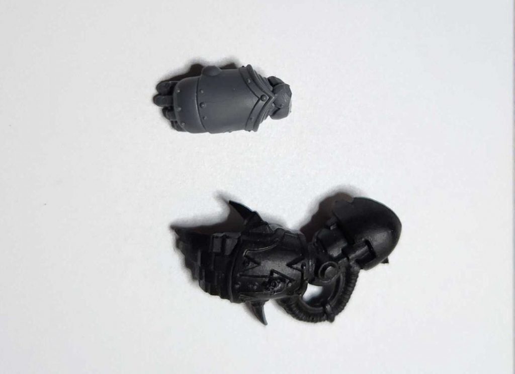 I've painted my share of Heresy models but I'm a 40k gamer at heart and even for my Heresy models I prefer the modern Chaos aesthetic, which works fine for latter-day Traitor armies. If there's one thing I did not like about this kit, it's the weirdly small power fists. The first thing I did with this new kit was replace the power fist with a Chaos Marine Terminator fist from one of the older 2005 kits I had lying around. The good news is, the sizes here all line up and this was an incredibly easy kitbash - no greenstuff required.