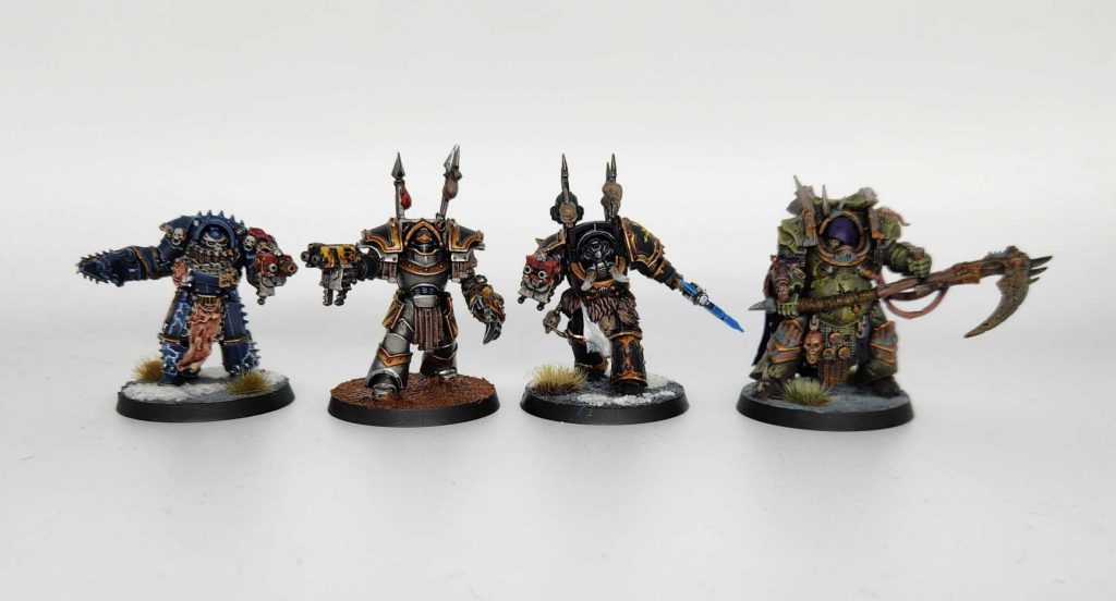 I wanted to paint my new Chaos Terminators as Iron Warriors, as I think the more restrained aesthetic fits them better and Cataphractii Armor just feels more Iron Warrior to me. So that's how I painted them, and the first one I painted is by far the most restrained of the bunch: