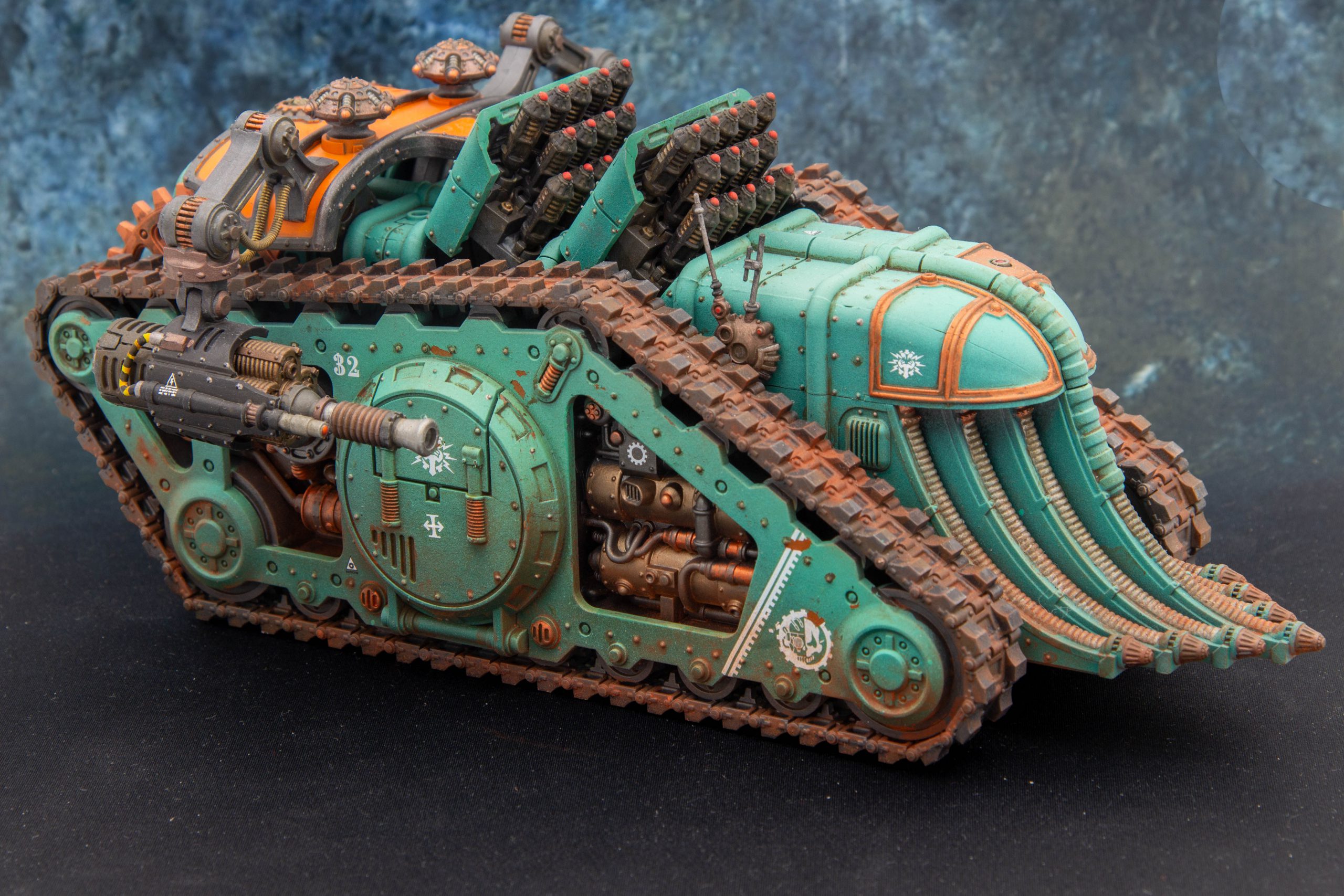 Soggy using just one or two sub assemblies on the Krios TankrealSnice: The frames that come together to create the two track assemblies leave a painter with a decision to keep them separate to easily paint the inside, in my approach i maintained my base color on the inside and outside of the combined parts but the classic Mechanicum scheme of having a metallic interior makes it difficult to reach some of the inner details if you glue them together before painting. I was heavily inspired by @meddersminiatures and his desaturated green scheme and I look forward to applying this to a full army in 2025.