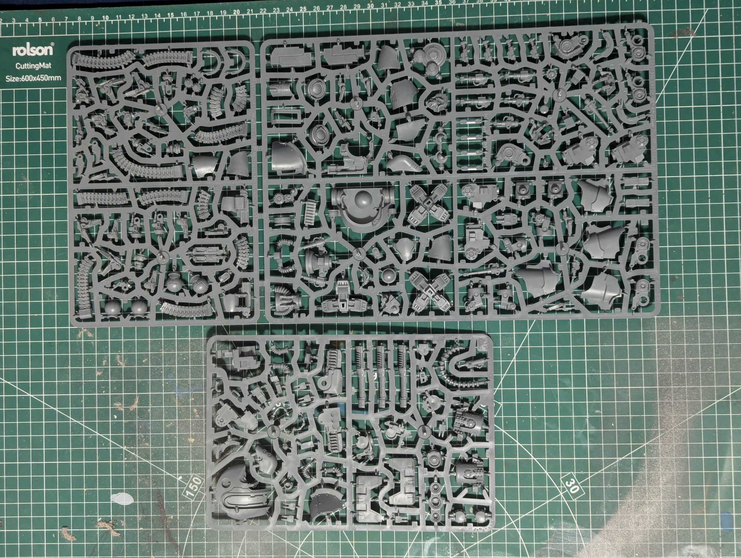 Thanatar Calix SpruesWhen it came time for painting, given how static things are you can paint most things separately - such as the arms, torso, legs and faceplate. Unlike with some Titanicus kits, not all the armour plates are separate from the skeleton, so you can’t airbrush all of these separately - although you can do the skeleton first and then use masking putty to do the plates.