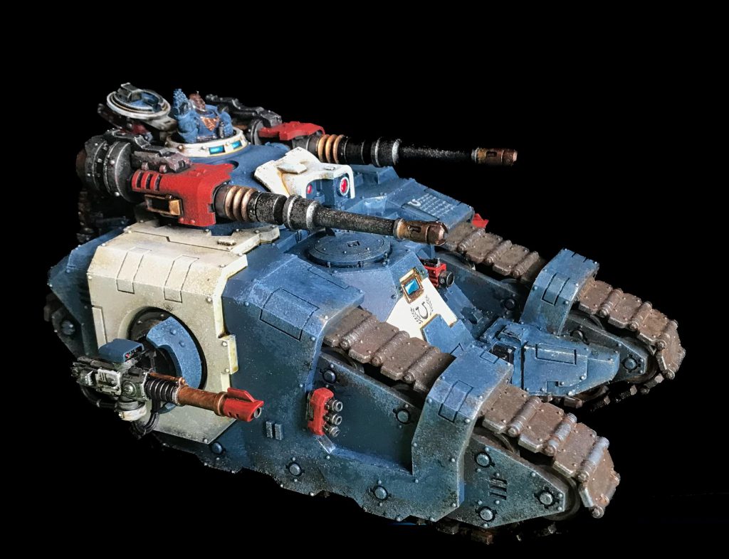 It doesn’t particularly matter what vehicle you put a Lanius in. His abilities don’t rely on his tank, or improve it much. The banestrike bolt cannon is quite good against infantry, with S6 and breaching 6+ but only a 24” range. It might make sense to put him on something like a Sicaran Punisher and have it accompany your infantry advance, throwing dakka at the enemy – and occasionally your own side.