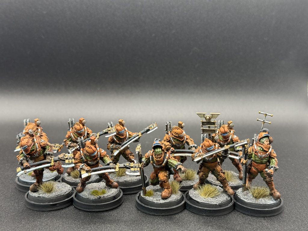 - Troops Master, 9 Veterans with Blast Chargers, Command Vox, Augury Scanner, Auxilia Vexilla